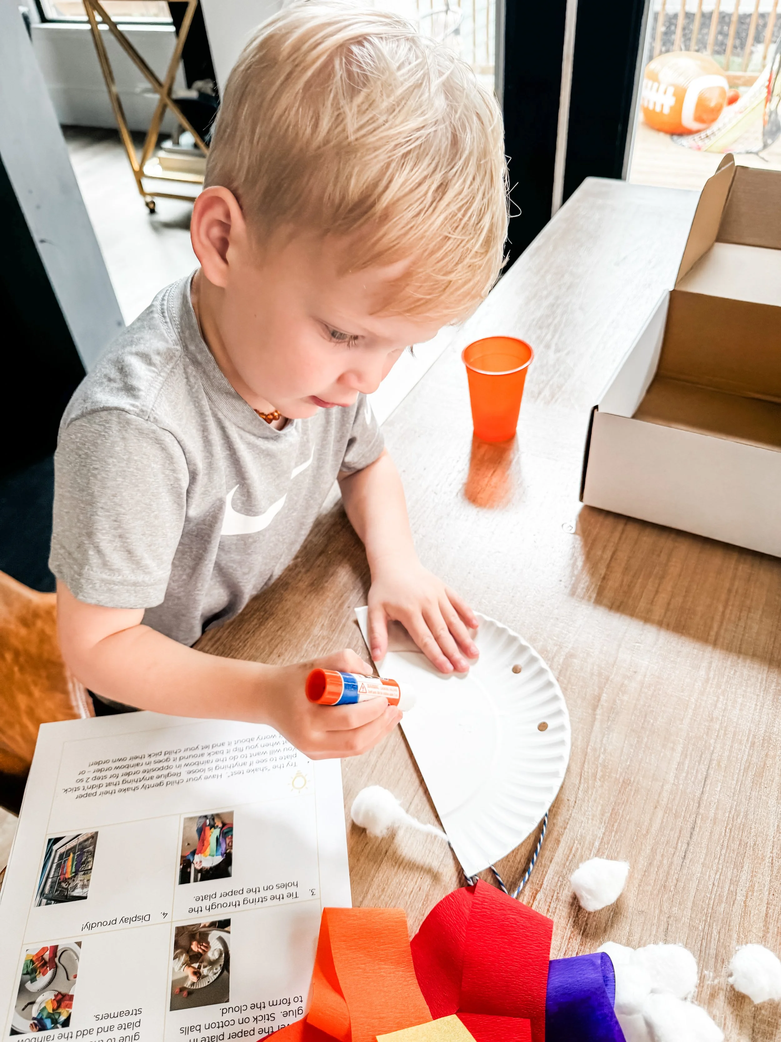 “We loved our February kit! 3 fun activities in the box and my 22 month old loved each one! One craft required more hands on help and practicing those fine motor skills. One was fun and the perfect amount of messy. One came with a frame that I have hung up in his playroom. All so thought through and a perfect grab for a slow day at home! 10/10!”
